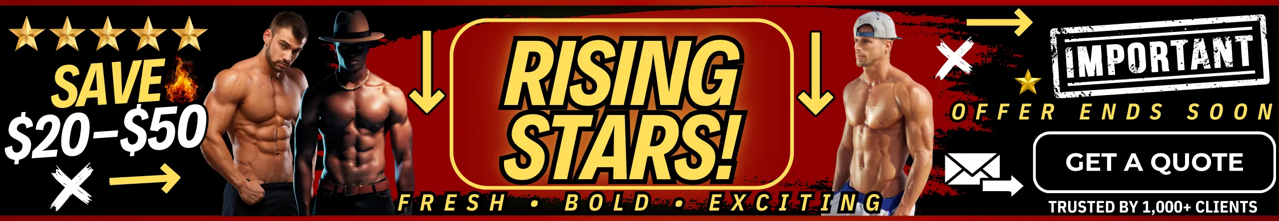 Looking to hire professional Male Butlers for your next celebration? Our elite male butlers are available for bachelorette parties, despedidas de soltera, ladies’ nights, girls’ night out, birthday parties, divorce parties, LGBTQ+ events, and private parties nationwide. We also offer upscale party services including male butlers, cabana boys, shirtless bartenders, and sip & paint male models, all carefully selected for their looks, personality, and professionalism. Whether you’re booking one entertainer or a full male revue experience, we make it easy to find the best male entertainers near you for a fun, stylish, and unforgettable event.